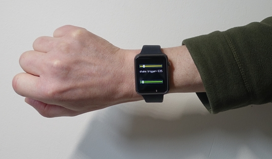 A short press: The unit receives the greatest shake value for the last 5s from the watch so you can tune in the right trigger level. The watch shows both the trigger threshold and the last shake it received on two scales.